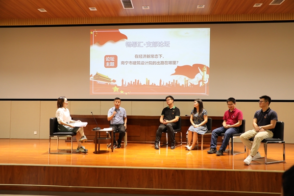 活動在奏唱國歌中拉開序幕,“暢想?yún)R·支部論壇”是本次主題黨日的重點內(nèi)容。在蔣晏平同志的主持下,黃磊群、何奇芳、王維紅和覃敏貴等4位黨員以論壇嘉賓身份圍繞“在經(jīng)濟新形勢下,南寧市建筑設(shè)計院的出路在哪里?”這一主題進行了激烈而深入的探討,主持人還不時與場下的黨員互動,大家結(jié)合自己的工作實際,各抒己見,暢所欲言,碰撞出更多新思路、新方向的火花。其中王維紅同志提出的基層黨建工作是黨的組織建設(shè)的重要環(huán)節(jié),是基層單位完成各項工作任務(wù)的根本保證,因此單位的發(fā)展必須以黨建工作為引領(lǐng)的觀點得到了廣大黨員的認(rèn)同,會場響起熱烈的掌聲。