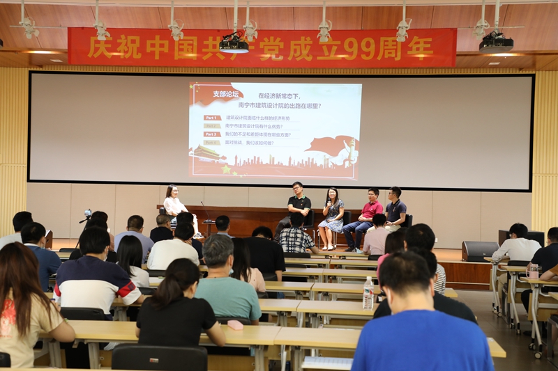 為慶祝中國共產(chǎn)黨成立99周年,鼓勵廣大黨員在工作一線擔(dān)當(dāng)作為,7月1日下午,南寧市建筑設(shè)計院黨總支在2樓報告廳舉行慶祝中國共產(chǎn)黨成立99周年主題黨日活動,全院100多名黨員齊聚一堂,通過深入開展暢想?yún)R·支部論壇、重溫入黨誓詞等活動內(nèi)容,激發(fā)黨員參與單位管理的積極性,推動黨建工作與業(yè)務(wù)工作深度融合,以實際行動向“七一”建黨節(jié)獻禮。