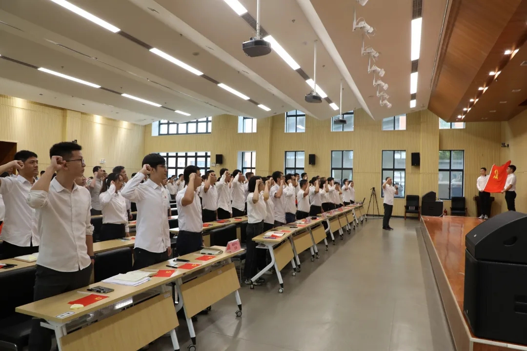 奮斗百年路,啟航新征程。當(dāng)天上午,公司全體黨員面向黨旗,舉起右拳,再一次重溫入黨誓詞?!拔抑驹讣尤胫袊伯a(chǎn)黨,擁護(hù)黨的綱領(lǐng),遵守黨的章程……”鏗鏘有力的宣誓聲在會(huì)場回蕩。