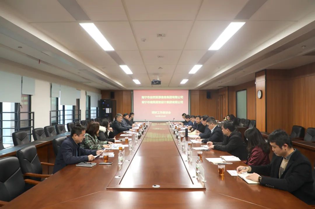 近日,南寧市自然資源信息集團(tuán)有限公司黨委書(shū)記、董事長(zhǎng)、總經(jīng)理梁戰(zhàn)帶隊(duì)到我集團(tuán)公司交流座談。集團(tuán)黨委書(shū)記、董事長(zhǎng)韋文學(xué)參加會(huì)議,集團(tuán)總經(jīng)理、副董事長(zhǎng)馮江泉主持座談會(huì)。
