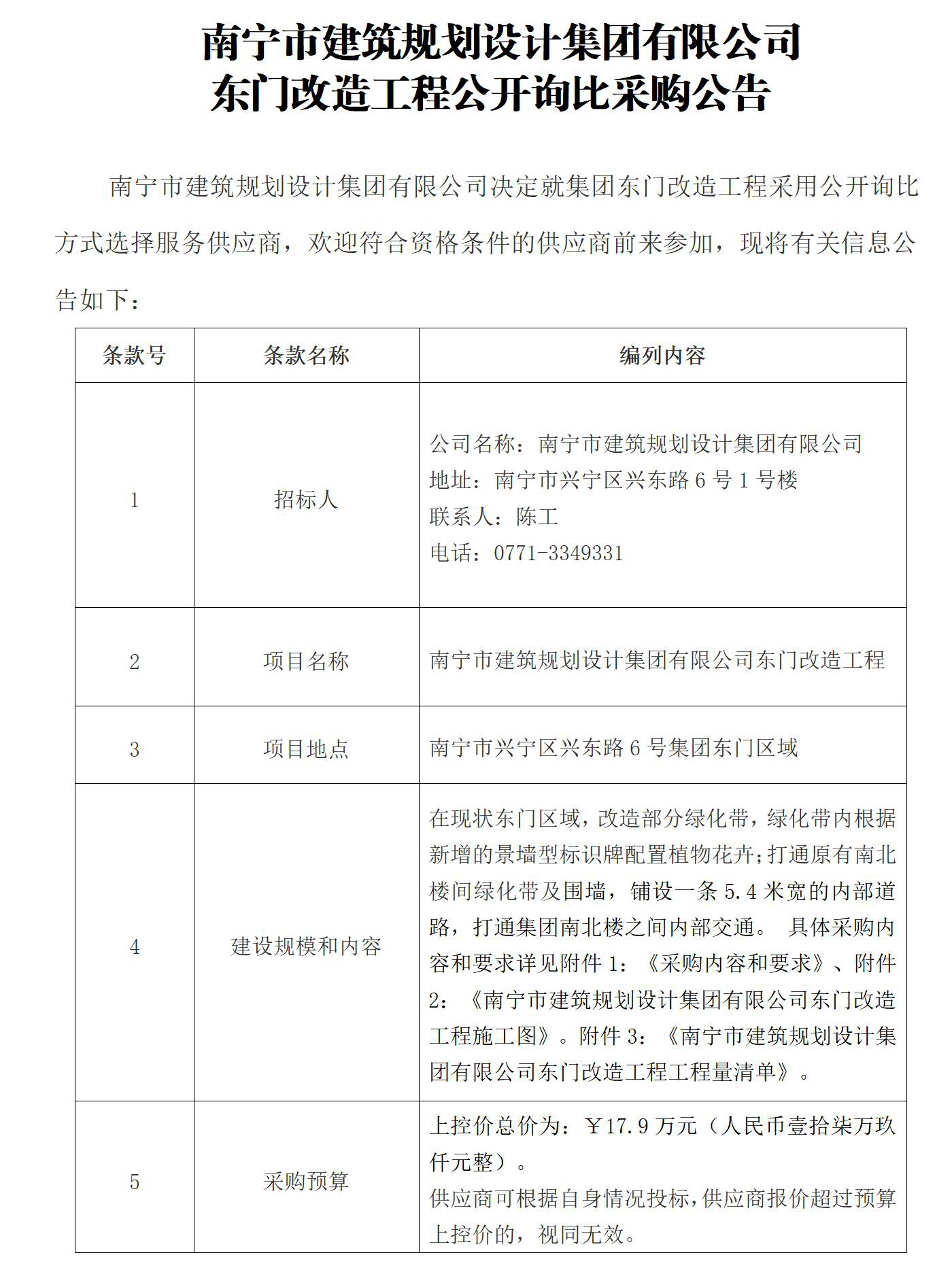 附件3:南寧市建筑規(guī)劃設計集團有限公司東門改造工程招標工程量清單
